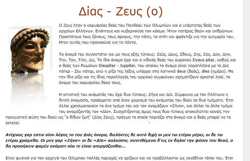 Commentaires personnels : Dias - Zeus. Le grec est une langue qui se décline tout comme le latin et l'allemand.